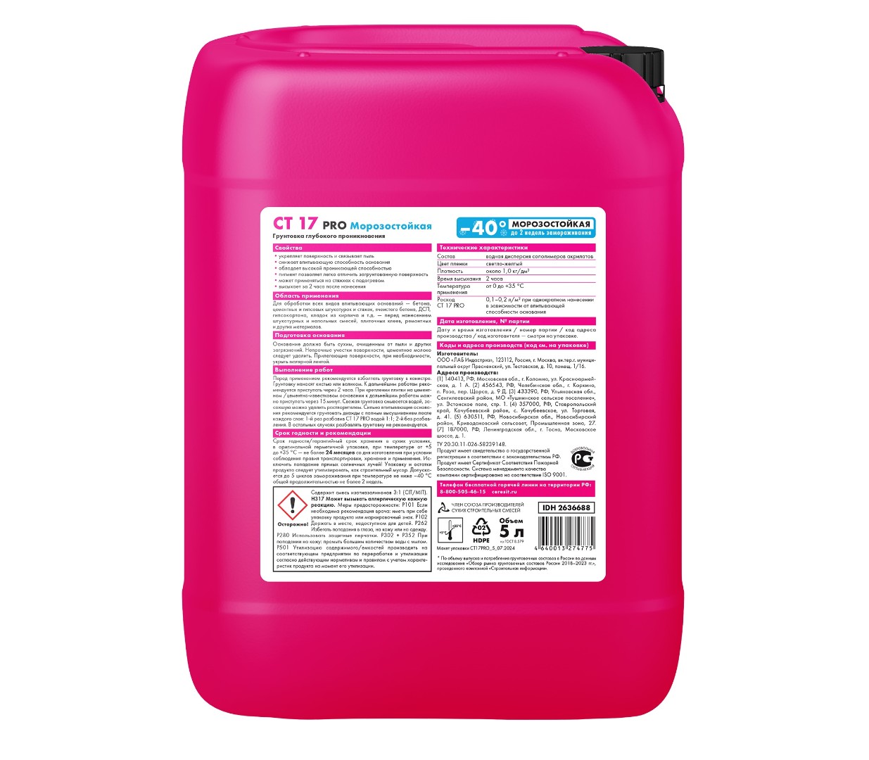 Описание товара: "Грунтовка Ceresit СТ 17 PRO 5 л морозостойкий"