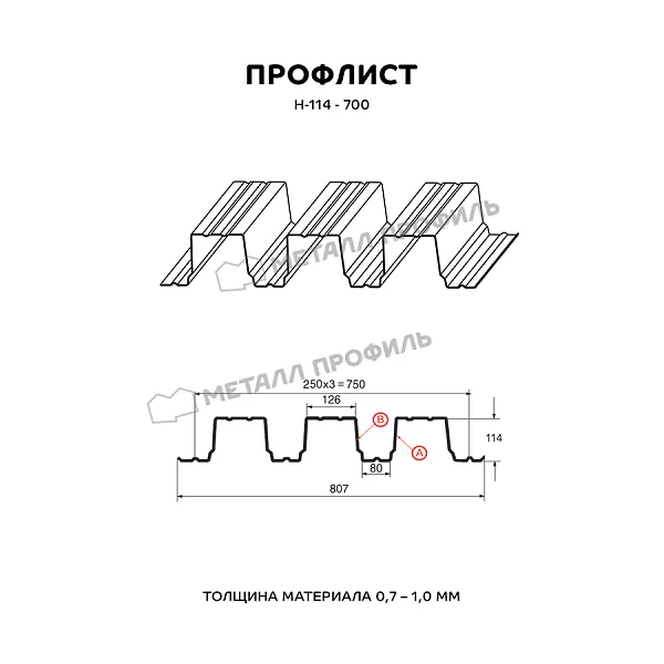 Описание товара: "Профнастил Н114 x 750 B ОЦ оцинкованный 01 БЦ 0,9 мм"