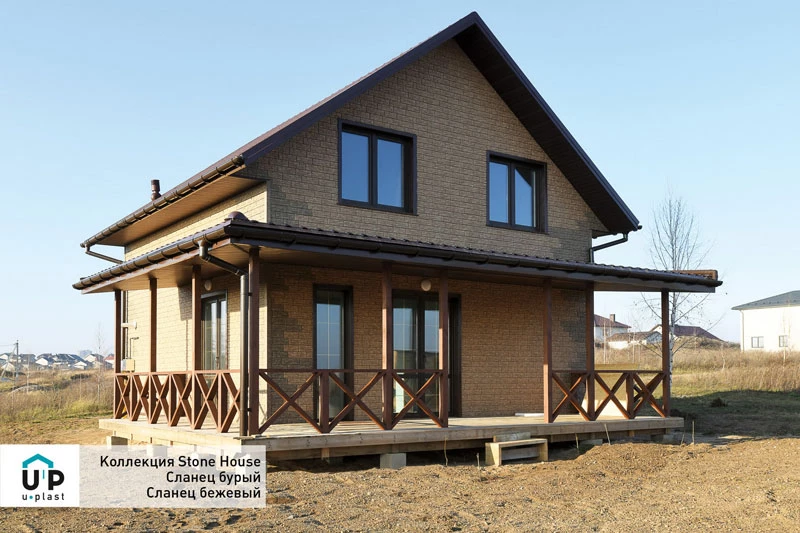 Панели Ю-Пласт из серии Стоун Хаус Сланец придадут вашему дому брутальности и основательности. Соединение шип-паз облегчает монтаж: для установки этих панелей не требуются соединительные планки.