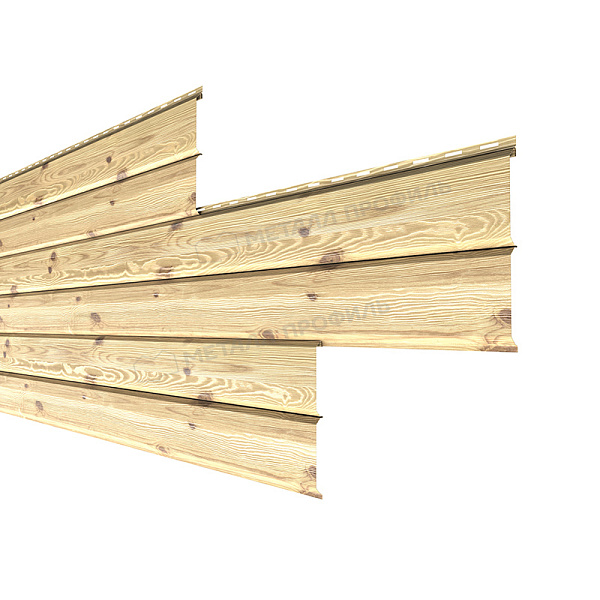 Сталь с покрытием на основе модифицированного полиэстера ECOSTEEL® – прекрасная замена природным стройматериалам. Натуральное дерево подвержено порче насекомыми, влиянию агрессивной среды горению. Поэтому требует пропитки химикатами, дополнительного ухода, окраске. Всё это противоречит изначальной идее использования экологичного материала. ECOSTEEL® по внешнему виду практически нельзя отличить от дерева. Вместе с тем изделия с полимерным покрытием гораздо экономичнее натуральных материалов. Декоративный слой делает металл высокоустойчивым к неблагоприятным природным явлениям – снег, ультрафиолет ветер. В каталоге компании есть на выбор такие породы дерева, как: сосна, белёный дуб, морёный дуб.Преимущества: