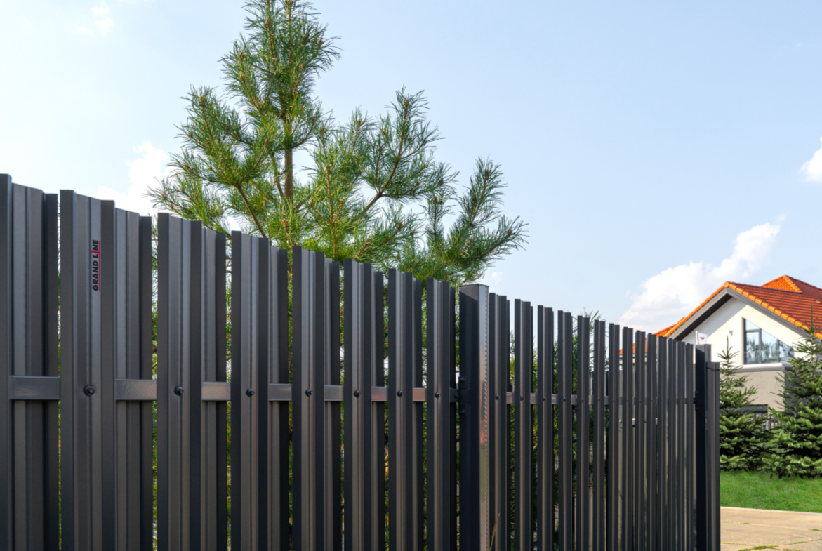 Металлический штакетник — это тип ограждения, состоящий из металлических панелей шириной 100–128 мм и имеющих различные варианты профиля.
