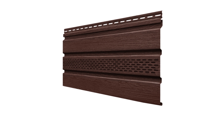 Софит с центральной перфорацией Технониколь - это виниловая панель, которая используется для отделки скатов крыш, карнизов, балконов и других выступающих фасадных элементов. Перфорированная часть этой панели обеспечивает естественное проветривание и предотвращает скопление влаги в пространстве между сайдингом и стеной.Панели не подвержены коррозии и гниению, выдерживают высокую влажность, устойчивы к перепадам температур и ультрафиолетовому излучению, а также изготавливаются из экологически чистых материалов. Простой монтаж и использование стандартных инструментов делают установку софитов легкой и быстрой.